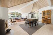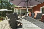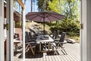Sommerhus i træ med stor delvist overdækket terrasse