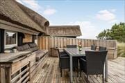 Stråtækt sommerhus på læfyldt grund kun 400 meter fra Vesterhavet.