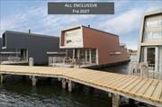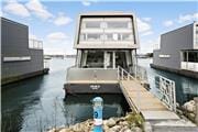 Moderne husbåd med unik placering og terrasse lige ved vandet