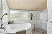 Et sommerhus i Jam­mer­bug­ten giver en ferie tæt på hav, natur og mindre kyst­sam­fund. Kyst­stræk­nin­gen er kendt for brede sand­stran­de, høje klitter og den særlige ro, som Ve­ster­ha­vet skaber. Dagen kan begynde med en gåtur langs stranden, hvor børnene leger i sandet, eller i en klit, hvor udsigt og havet sætter en rolig ramme. Bag kysten ligger plantager og åbne land­ska­ber, der giver gode mu­lig­he­der for cykel- og van­dre­tu­re. Byer som Blokhus, Løkken og Fjer­rits­lev tilbyder lokale spe­ci­a­li­te­ter, butikker og en imø­de­kom­men­de stemning. Med et sommerhus i Jam­mer­bug­ten er der fleksible rammer for en ferie, hvor ro, ak­ti­vi­te­ter og op­le­vel­ser kan kom­bi­ne­res efter behov.