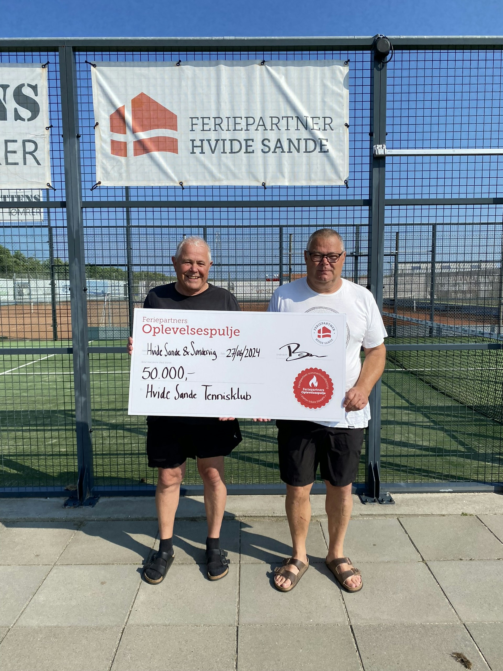 I Feriepartner Hvide Sande støtter vi initiativer, der skaber flere aktivitetsmuligheder for både de lokale og vores mange feriegæster. Derfor har vi via Oplevelsespuljen støttet med 50.000 støttekroner til Hvide Sande Tennisklub, så de kan få en ny hybridbane og opsat lysmaster.