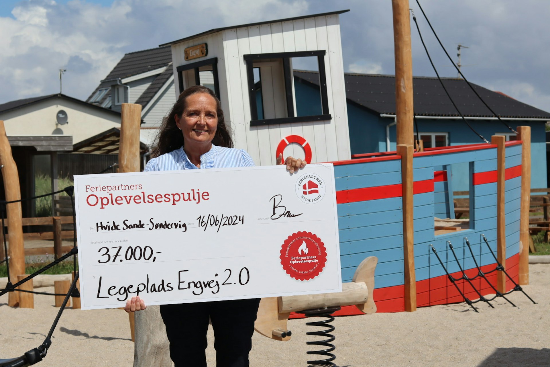 Hos Feriepartner Hvide Sande støtter vi initiativer, der skaber værdi for både de lokale og vores feriegæster. Derfor er vi glade for at kunne bidrage med 37.000 støttekroner fra Oplevelsespuljen til etableringen af en ny legeplads i den sydlige del af Hvide Sande.