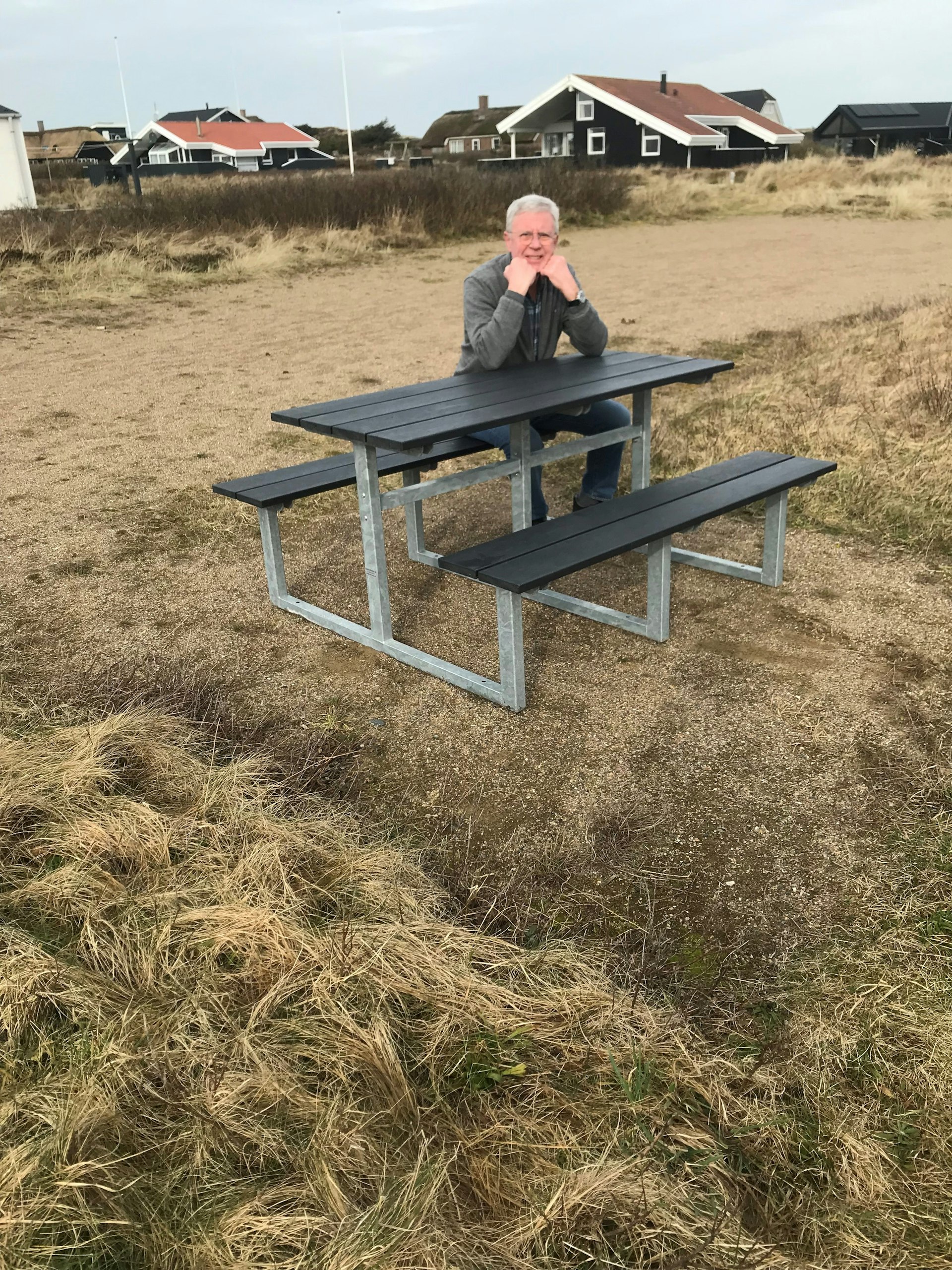 Hos Feriepartner Vejlby Klit støtter vi initiativer, der gavner både lokale og feriegæster. Derfor har vi bidraget med de ønskede støttekroner fra Oplevelsespuljen til et nyt bordbænkesæt til Grundejerforeningen Vejlby Klitplantage.
