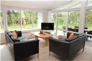 Flot moderniseret sommerhus på stor og grøn naturgrund