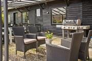 Spisestuens glasdør fører lige ud til en vestvendt terrasse, så det er oplagt at tage eftermiddagskaffen eller aftensmaden med herud, når vejret indbyder til det. På gårdspladsen ved huset er der også mulighed for at slå sig ned, hvis solforholdene er bedre her. Den store naturgrund deler I med tre andre sommerhuse, og her har I masser af plads til leg og boldspil, til at tumle med jeres hunde eller til at sidde roligt i græsset, mens I nyder fuglenes kvidren og en stille summen fra insekterne. Omgivelserne er rolige, blandt andet fordi alle biler skal holde på parkeringspladsen – og her finder du for øvrigt en lader til elbil.
