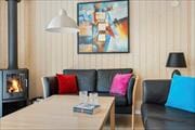 Pænt og lyst hus med høj boligstandard. Køkkenet hvorfra der er åbent ind til spisepladsen, er stort og moderne. Stuen er rummelig og har et godt sofaarrangement, lænestole og brændeovn. Der er godt med skabsplads til opbevaring og gode boksmadrasser i værelserne. Det store badeværelse har spa, sauna, vaskemaskine og tørretumbler.