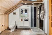 I husets vestlige ende kan I slå jer ned i den store, lysfyldte karnap, hvor I kan nyde solen og den fine udsigt til grunden. På kølige årstider er der ikke noget bedre end en tur i en varm sauna, når I vender hjem fra en blæsevejrsgåtur langs med Vesterhavet, og saunaturen kan for øvrigt suppleres af et bad i vandmassagebrusekabinen.
