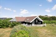 Hus-ID: 465På en lille, blind vej i Aargabs flotte klitlandskab står dette dejlige og rummelige sommerhus klar til jeres næste ferie. Her kan I hygge jer inden døre nær stuens brændeovn eller i den solfyldte karnap, og ude er der god plads til at slappe af og lege på den ugenerede klitgrund.