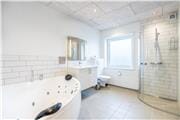 Ferielejligheden har en lys og lækker indretning, og akustiklofter skaber sammen med et skønt lysindfald en behagelig atmosfære. Fire soveværelser giver sengepladser til otte personer, og alle værelser er udstyret med tv, skrivebord og et garderobeskab. Begge badeværelser har bruseniche, og derudover byder det ene på et spabad, mens det andet har en vaskesøjle. Køkkenet er godt udstyret til at kunne klare madlavningen til alle, retterne kan serveres ved et af opholdsområdets to spiseborde, og med opvaskemaskinen er rengøringen hurtigt overstået. Ligeledes er her et sofaafsnit med tv samt en loungesektion med tv, hvor I også kan surfe via lejlighedens wi-fi. Lejligheden ligger på første sal i en ejendom ud til havnen, og derfor kan I nyde en pragtfuld udsigt over Ringkøbing Fjord, indsejlingen til slusen og havnebassinerne, hvor kutterne vugger blidt på bølgerne.