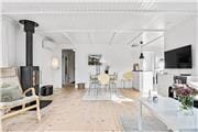 Åbent lyst moderniseret køkken med stue, der har store vinduer og glasdør ud til terrassen, spiseplads samt brændeovn. Huset har 3 gode soveværelser, et med dobbeltseng og to med to enkeltsenge hver. Der er et nyt badeværelse med bruseniche og gulvvarme. Bryggers med vaskemaskine og opbevaringsplads. Der er flotte trægulve i hele huset. Virkelig et lækkert klassisk dansk sommerhus.