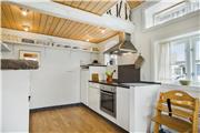 Dette dejlige hus er stilfuldt renoveret med gode materialer og med hensyntagen til den historie, som er i dette gamle hus. Der er fritliggende bjælker og nogle steder er det stadig de gamle staldvinduer der sidder i.