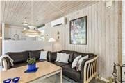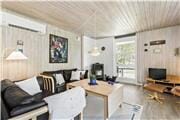 Stuen er lys og godt indrettet med et dejligt opholdsområde. Skulle der komme en kølig aften, er der brændeovn i stuen. Stue og spiseområde er kombineret, og fra spiseområdet er der et godt udsyn til naturen og udgang til terrassen. Køkkenet er åbent, så der er mulighed for at være med i samtalen under forberedelserne til dagens måltider. Det er et hus med en god standard, som er velegnet til familieferien.