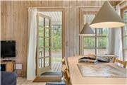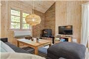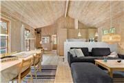 En stor stue kombineret med køkken og god spiseplads. Fra stuen er der udgang til den delvist overdækkede terrasse. Badeværelset har bruser, gulvvarme og sauna. Der er tre soveværelser, de to er med dobbeltsenge og det tredje er med to enkeltsenge. Der er også en hems, hvor de adrætte kan klatre op og hygge sig.