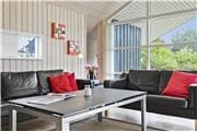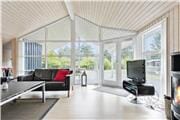 Dette lækre sommerhus er stilfuldt indrettet, med moderne møbler og gode faciliteter. Der er en entré med vaskemaskine og tørretumbler, videre kommer man ind i køkkenet, hvor der er godt med bordplads og udsigt mod haven. Køkkenet ligger ved siden af stuen, men man kan trods det følge med i snakken der. Stuen er stor, og der er åbent til kip. Der er en spiseplads, en sofa- og fjernsyns afdeling, samt en alkove. Herfra er der også udgang til den delvis overdækkede terrasse. Udover alkoven er der 3 soveværelser, 2 med dobbeltsenge og et med en køjeseng. I huset finder I også 2 badeværelser. Det ene med bruser og toilet og i det store er der oven i købet sauna og spa. Et perfekt hus til den store familie, som er ude efter et lyst og venligt luksushus.