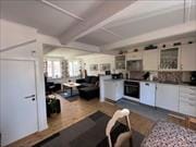 På førstesalen finder du to soveværelser; et med en dobbeltseng og et med to enkeltsenge, endnu et skønt badeværelse med bruser + en hems med 4 ekstra sovemuligheder.