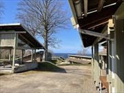 Lejligheden har to overdækkede udendørsområder - en balkon samt en terrasse med havemøbler og grill. Fra terrassen er der udsigt til Østersøen og solnedgangen. Tag yndlingsdrikken med ud på terrassen når I griller og lyt til vindens sagte susen i træerne og ikke mindst fuglene der holder til her, en af dem er nattergalen, den smukke fløjten lyder ud over hele området. Skoven omkring byggeriet giver mulighed for ro og afslapning tæt på naturen. På den store fællesgrund er det havemøbler, legeplads med gynger, vipper, svævebane og hoppepude til børnene samt petanquebane og bålplads. Der er parkeringsmulighed tæt på lejligheden.