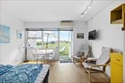 En lille hyggelig lejlighed med udsigt til havet og klippekysten. Lejligheden er indrettet med fokus på lysindfald og åbenhed. Stuen er indrettet med spiseplads ved terrassedøren, et par dejlige lænestole samt dobbeltsengen. Fra stuen er der adgang til det åbne funktionelle køkken og den åbne terrasse med havemøbler og grill. Her kan du tilberede dagens lækkerier på grillen og nyde havudsigten. Badeværelset har toilet og bruseniche.