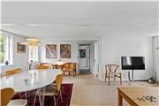 Huset er renoveret og fremstår nu hyggeligt og indbydende. Huset har et stort bryggers med vaskemaskine. Herfra er der adgang til badeværelset. Badeværelset er enkelt og funktionelt. Fra bryggerset kommer man ind i spisestuen, hvor der er spiseplads, et sofaarrangement og TV. Herfra kommer man videre ind i køkkenet. Køkkenet er rummeligt, veludstyret og lyst. Fra køkkenet, stuen og et værelse er der en dejlig udsigt over Tejn og havet. Der er 4 soveværelser i huset, 3 i stueetagen og et på 1 sal. Dette er et hus med god boligstandard, moderne indretning og et godt lys. Der er 180 cm til de gamle charmerende tagbjælker.