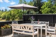 Huset er omgivet af en stor terrasse, der gør det muligt at nyde solens stråler hele dagen. Den sydøstvendte terrasse er ideel til morgenkaffen, mens du nyder de første solstråler. På den sydvestlige terrasse kan du nyde solen hele dagen. Den nordvestvendte terrasse er delvist overdækket og giver en perfekt ramme til lange sommeraftener, hvor du kan nyde den kølige aftenbrise. Naturen omkring sommerhuset er en fryd for sanserne. Med høje træer og frodig vegetation kan du ofte være heldig at få et glimt af harer, ræve eller krondyr, der besøger grunden.