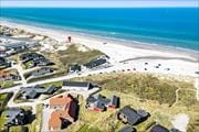 Inden døre er atmosfæren lys og let, og der er hele 161 m2 at brede sig på, så I kan nemt og bekvemt samles ti personer. Sommerhusets fem værelser er opdelt i to soveafsnit, og her skal det største værelse især bemærkes, for det ligger mod vest, så I kan nyde synet af Vesterhavet og Blokhus Sømærke fra himmelsengen! Planløsningen byder også på et praktisk bryggers og to badeværelser, hvoraf det ene har et stort spabad til to personer. Feriens sociale stunder bliver sat smukt i scene i opholdsafdelingen, hvor køkken og stue er forenet. Måltiderne kan foregå ved langbordet under lysekronen med frit udsyn til hav og klitter, og når der skal slappes af med brætspil, avislæsning eller strikketøjet, har I flere gode sofapladser og hyggekroge at vælge imellem.