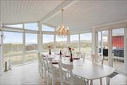 Hus-ID: BL1463Den spektakulære udsigt til Vesterhavet og de marehalmsklædte klitter er blot én af mange glimrende grunde til at holde ferie på Strandvejen 22. Dette skønne sommerhus er nemlig særdeles rummeligt og har en lækker indretning med spabad, brændeovn og gode kvalitetsmøbler, og så ligger det i første række til vandet for enden af en lille stikvej – og samtidig mindre end fem minutters gang fra bymidten i Blokhus.