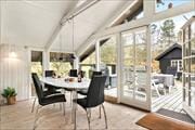 Dette sommerhus er oprindeligt opført i 1977, men har løbende gennemgået en omfattende renovering, så det i dag fremstår i rigtig god stand og klar til at tage imod glade og forventningsfulde gæster. Holdt i lyse farver og med loft til kip så har dette hus et dejligt lysindfald og er altid præget af en hyggelig stemning. De mange store vinduespartier og den smukt indrettede store opholdsafdeling er med til at understrege dette indtryk. Sommerhuset består ud over hovedhuset at et lille anneks - de 2 enheder er forbundet igennem et stort terrasseareal. I annekset finder I et værelse og et gæstetoilet, hvilket gør stedet ideelt for familien med et par teenagebørn, der ønsker at have helt deres eget.