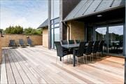 Det er ikke kun indenfor, at du og dit selskab har fine forhold, når I vil nyde ferien sammen med leg og afslapning. Også ude i det fri kan I se frem til at have det skønt på den store, grønne naturgrund, der byder på et sjovt legestativ til de yngste, flere bord-bænke-sæt og en dejlig græsplæne med plads til havespil. En stor og flot træterrasse breder sig mod syd, så her er solforholdene gode – og mon ikke du kan indsnuse den friske havluft og næsten høre bølgernes brusen, når du sidder her og læner dig tilbage?