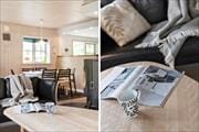 Når I ikke er ude for at opleve Blåvand eller nyde sommervejret på stranden, er det dejligt at have et rart hus at hygge sig i. Alle rum har en lys og pæn fremtoning, og den åbne forbindelse mellem køkken og stue gør det nemt at bruge tiden sammen – også når en del af familien laver mad og resten leger eller spiller brætspil. I kan også alle samles omkring bordfodboldbordet til en hurtig dyst, og hvis I slet ikke kan få nok, kan I lade turneringen brede sig over flere dage. Stuens brændeovn er perfekt til eventuelle kølige dage og aftenener, og når det er sengetid, har I to gode soveværelser til rådighed. Et badeværelse med bruser og vaskemaskine hører med til planløsningen, og husets rummelige entré med store glaspartier fungerer glimrende som udestue.