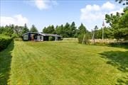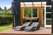 Sommerhuset er omkranset af en stor, dejlig kuperet naturgrund med gamle fyrtræer. Rundt om hele vest- og østsiden af huset er der en meget stor træterrasse med havemøbler og grill.
