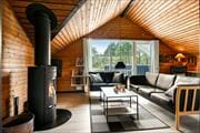 I huset er der et hyggeligt køkkenalrum og stue med god plads til seks personer. I stuen kan I nyde aftenerne med ild i brændeovnen eller kortspil ved spisebordet. Fra stuen er der direkte adgang til den sydvendte terrasse.