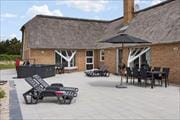 Med en grund på hele 3.409 m2 får I også masser af plads til at nyde fe­ri­e­li­vet ude i det fri. Både store og små kan spille bold på græsplænen, og de yngste feriegæster kan hygge sig med at gynge og lege i sand­kas­sen. Der er også et udendørs skakspil, som man kan hygge sig med. Vil I grille, solbade og slappe af, er den solrige terrasse perfekt til formålet, og selv i køligt vejr kan I få glæde af terrassen takket være det udendørs spabad, der forlænger udesæsonen på herlig vis.