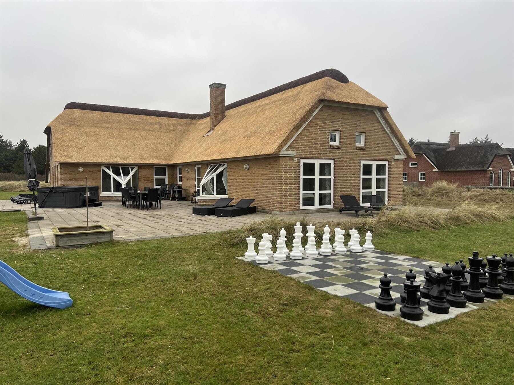 Med en grund på hele 3.409 m2 får I også masser af plads til at nyde ferielivet ude i det fri. Både store og små kan spille bold på græsplænen, og de yngste feriegæster kan hygge sig med at gynge og lege i sandkassen. Der er også et udendørs skakspil, som man kan hygge sig med. Vil I grille, solbade og slappe af, er den solrige terrasse perfekt til formålet, og selv i køligt vejr kan I få glæde af terrassen takket være det udendørs spabad, der forlænger udesæsonen på herlig vis.
