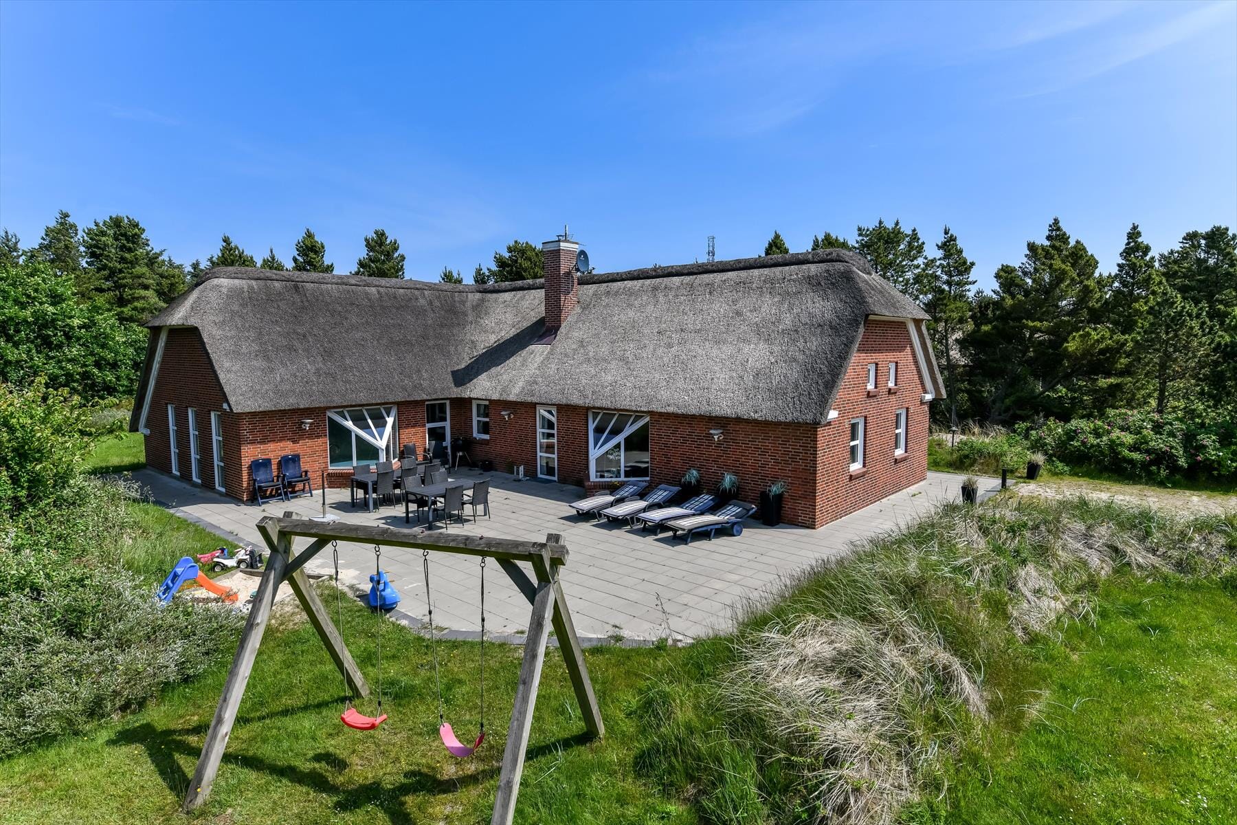 Hus-ID: BV253I kan se frem til en rar og afslappende ferie, når den foregår i dette skønne poolhus på Ingridsvej 36 i Blåvand. Vejen er lukket, så omgivelserne er fredelige, når I hygger jer hjemme i huset eller på terrassen, og samtidig har I nem adgang til både bymidten og stranden.