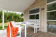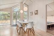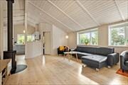 Sommerhuset er på hele 110 m2, så inden døre er der masser af plads til seks feriegæster. Alle rum er smagfuldt indrettet med moderne møblement, og de lyse farvetoner og det gode naturlige lysindfald er med til at skabe en skøn atmosfære. I opholdsafdelingen kan I slænge jer i sofaafdelingen nær brændeovnen, spille brætspil ved spisebordet eller tage en slapper i alkoven – eventuelt mens aftensmaden passer sig selv i ovnen i det åbne køkken. Trænger I virkelig til at koble af, er det måske tid til en tur i saunaen og spabadet. Begge dele finder I på badeværelset, der hører med til planløsningen på samme vis som et gæstetoilet og tre rummelige soveværelser.