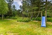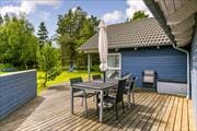 Syd for som­mer­hu­set breder en stor og delvist overdækket træterrasse sig ud mod baghaven. Plankeværket er med til at give læ og skærme det solrige op­holds­a­re­al af, og samtidig har du fint kig til græsplænen og le­ge­fa­ci­li­te­ter­ne, hvis du drømmer om at blive siddende, mens børnene hygger sig med at gynge, rutsje og spille bold. Hele familien kan samles for at spille petanque på den spe­ci­a­lind­ret­te­de bane mellem træerne, og du kan også arrangere en kro­ket­tur­ne­ring, så I kan afgøre, hvem der er feriens absolutte mester.