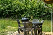 Rækkehusets sydvendte terrasse bliver hurtigt et naturligt samlingspunkt på ferien. Her kan du læne dig tilbage i havemøblerne med en god bog, mens solen varmer ansigtet, eller du kan dække op til en hyggelig frokost under åben himmel. Terrassen er et oplagt sted at starte dagen med morgenkaffen eller slutte den med et glas vin, når aftensolen falder blødt ind over området. Den lille, private uderamme skaber en følelse af fred og ro, og du kan nyde stilheden kun afbrudt af fuglenes kvidren eller bruset fra havet i baggrunden. Skulle vejret slå om, kan du trække indenfor og stadig have udsigt til terrassen gennem de store glasdøre – så naturen altid føles tæt på.