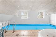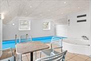 Hvis vi starter med at kigge ind i wellnessafdelingen, er en swimmingpool og et spabad placeret i samme rum, mens en god sauna ligger i forlængelse af badeværelset lige ved siden af. En stor del af ferien kan dermed oplagt blive brugt på at svømme, lege i vandet eller bare koble af i varmen – og hvis børnene kan fortsætte i længere tid end dig og de andre voksne, kan I holde øje med dem fra siddepladsen i poolrummet eller gennem vinduerne ind mod stuen. Netop stuen er et stemningsfuldt opholdsrum med brændeovn og pænt møblement, og det åbne køkken er udstyret med alt det nødvendige, når du vil diske op med et lækkert måltid. Endelig er det værd at fremhæve, at planløsningen med to badeværelser og fire soveværelser gør huset til en oplagt feriebolig for to børnefamilier.