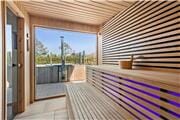 Fra annekset er der adgang til et fantastisk udendørs wellnessområde med panoramasauna og vildmarksbad. Her kan familien hoppe i det dejlige vildmarksbad, som opvarmes af den indbyggede brændeovnen. For de gæster, som er vilde med at gå i sauna, tilbyder sommerhuset en stor rummelig sauna. Fra saunaens kæmpe panoramavindue kan udsigten til brændeovnen i vildmarksbadet og de omkringliggende nåletræer nydes.