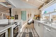 Når du træder indenfor i sommerhuset, bliver du mødt af et moderne og stilrent interiør, hvor hver eneste detalje er valgt med omtanke. De lyse farver og det åbne rum giver en luftig og behagelig følelse, som gør det let at slappe af og nyde ferien. Den rummelige opholdsstue er perfekt til hyggelige stunder – her kan du samles med dine nærmeste foran brændeovnen eller slappe af med en god bog i den komfortable sofa. Køkkenet er både funktionelt og flot indrettet, og her kan du nemt lave måltider, som kan nydes i det store spiseområde. De flotte soveværelser er stilfuldt indrettet og giver dig den perfekte base til at lade op efter en lang dag ved stranden.