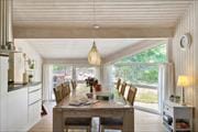 Bag Højen 19 er et dejligt sommerhus i Blokhus, hvor feriedagene får lov til at foregå i et roligt tempo og med masser af nærvær. Indretningen er varm og hjemlig med højt til loftet og åbne rum, som indbyder til fælles samvær. Stuen og køkken-alrummet ligger i forlængelse af hinanden og har store vinduespartier, der lukker lys og natur ind. Her kan du slappe af med en bog i sofaen, tænde op i brændeovnen på kølige dage eller nyde lange måltider omkring spisebordet, mens børnene tegner eller lægger puslespil. Det er nemt at finde sig til rette – uanset om I er to, fire eller flere, der holder ferie sammen.