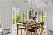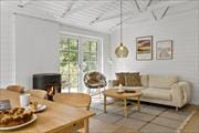 Huset fremstår smagfuldt renoveret med lyse rum, gennemførte materialer og en indretning, der får det hele til at føles både hjemligt og eksklusivt. Du bliver budt velkommen i et lyst opholdsrum, hvor køkken, spiseplads og sofaafdeling går ud i ét og danner rammen om feriens samvær. Her kan I samles om morgenbordet, spille spil ved spisebordet eller nyde en stille stund i sofaen, mens ilden knitrer i brændeovnen. Fra rummets store vinduer strømmer dagslyset ind og giver følelsen af at være tæt på naturen – selv når du opholder dig indenfor. Alt er indrettet med tanke på æstetik og komfort, så det bliver nemt at finde sig til rette og føle sig hjemme i huset.