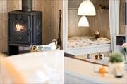 Når du træder ind i sommerhuset, mødes du af et åbent og lyst køkken-alrum, hvor brændeovnen skaber en hyggelig atmosfære på kølige aftener. Den indbydende alkove indbyder til afslapning med en god bog eller en stille stund. Husets indretning er funktionel og komfortabel, hvilket gør det nemt at føle sig hjemme fra første øjeblik.