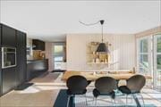 Det 82 m2 store hus har ligget her i Saltums grønne landskab siden 1961. I 2021 blev det renoveret og efterfølgende indrettet på gennemført vis, så husets indre fremstår hyggeligt og indbydende. Blandt andet er der kommet et flot, nyt køkken i opholdsafdelingen, der består af stue og køkken-alrum i åben forbindelse. En klassisk brændeovn er med til at skrue op for hyggestemningen og temperaturen, og rummets store vinduespartier giver jer mulighed for at kigge ud det naturskønne område, når I slapper af inden døre. Planløsningen byder for øvrigt på et badeværelse og to soveværelser, der er udstyret med henholdsvis en dobbeltseng og to enkeltsenge, så huset egner sig fint til fire personer.