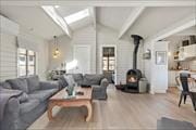 Når du træder ind i sommerhuset, mødes du af en lys og indbydende atmosfære. Den åbne stue med brændeovn skaber en hyggelig og varm stemning, og her kan du nemt samle dig med dine nærmeste til afslapning efter en lang dag. Det store vinduesparti sikrer et fantastisk lysindfald, som giver hele huset en let og åben fornemmelse. Her er der plads til at både slappe af og være social, uanset om du nyder en god bog foran pejsen eller hygger dig med et brætspil ved spisebordet. Den dejlige indretning understøtter en uforstyrret og afslappende ferie.