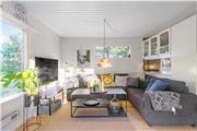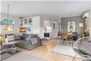 Indenfor finder du et åbent og indbydende opholdsrum, hvor hele familien nemt kan samles. Den hyggelige stue med brændeovn er et oplagt sted at tilbringe de køligere aftener, hvor I kan hygge jer med spil, film eller bare varme jer foran flammerne. De store vinduer giver masser af lys og skaber en behagelig, indbydende atmosfære. Det er let at føle sig hjemme her, hvor der er masser af plads til at slappe af og nyde hinandens selskab. Sommerhuset er udstyret med funktionelle og komfortable møbler, som understøtter den afslappede ferieoplevelse.