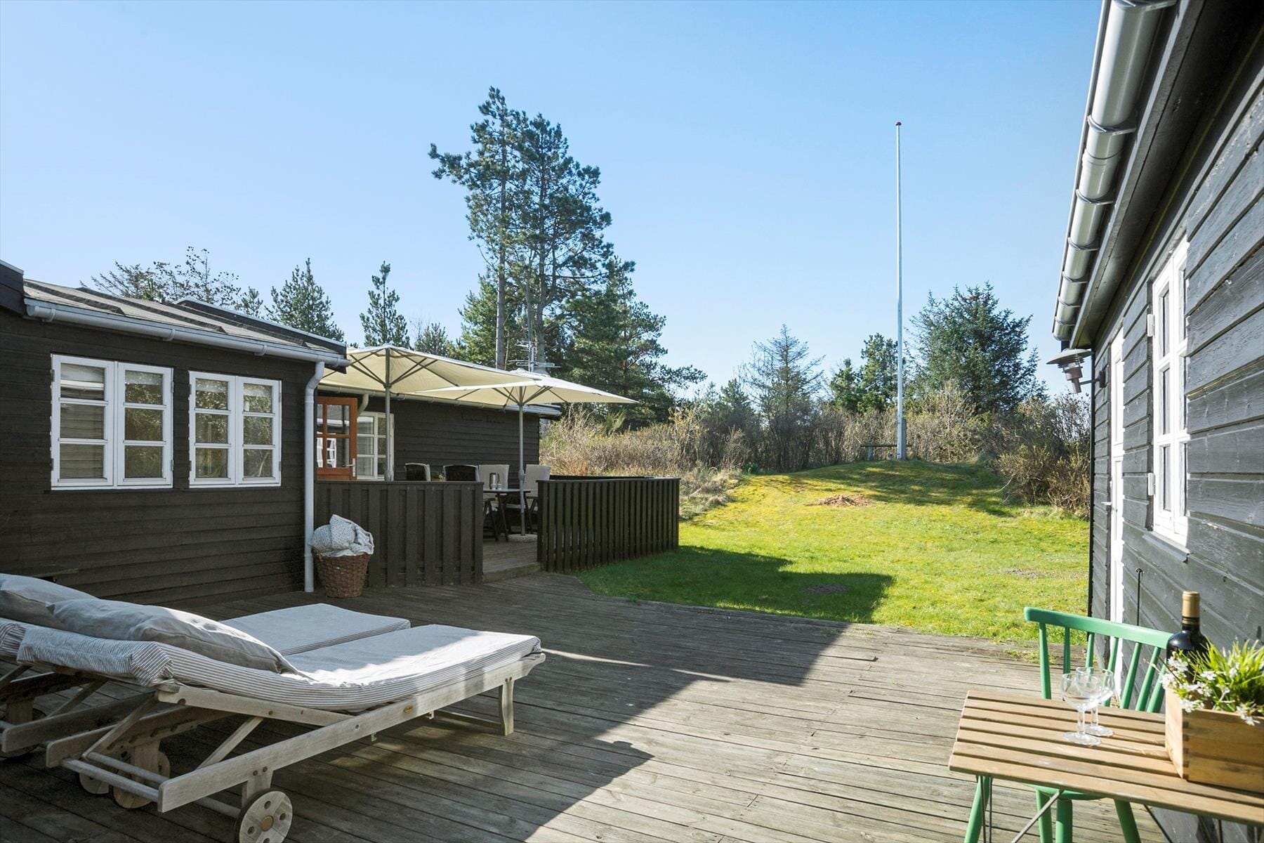 Hus-ID: BL1404Et hyggeligt sommerhus, solrige udearealer, fredelige omgivelser og nem adgang til naturen – I får simpelthen hele pakken, når I holder ferie i dette charmerende træhus, der ligger for enden af en lukket vej i Blokhus.