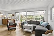 Lægger vejret op til indendørs feriehygge, kan I se frem til at tilbringe tiden i sommerhusets dejlige opholdsrum. Her har I et moderne åbent køkken at kokkerere i, og når måltidet står klar, kan I samles ved spisebordet nær brændeovnen. Trænger I til at slå mave bagefter, kan I rykke hen i den komfortable sofaafdeling med en god bog eller yndlingsprogrammet på fladskærmen. Sofaen er for øvrigt en sovesofa, så den fungerer som et godt supplement til sengene på de to soveværelser, når det er tid til at sige godnat. Planløsningen byder desuden på et badeværelse, og i entréen står en vaskemaskine, hvis I får brug for at friske feriegarderoben op.