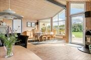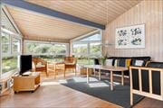 Atmosfæren er lys og indbydende inden døre i sommerhuset, som har en god og rummelig planløsning til seks personer med tre soveværelser, et badeværelse og en stor stue med integreret køkken. Huset er ikke bare en dejlig feriebolig i sommerperioden, men også på andre årstider. Er det køligt udenfor, kan I tænde op i brændeovnen og hygge jer i stuen med brætspil, gode bøger og film. Og uanset vejret er det dejligt at kunne kigge ud gennem vinduerne på det flotte landskab med bølgende marehalm og bløde klitter. Trænger I til at blive varmet igennem og slappe fuldstændig af, er der spabad og sauna på badeværelset.