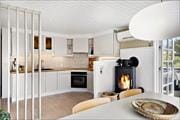 Når du træder ind i dette hyggelige sommerhus, mødes du af en varm og indbydende atmosfære, der emmer af ægte sommerhusidyl. De lyse trævægge og det naturlige lysindfald skaber en afslappet stemning, hvor du straks føler dig hjemme. I 2025 blev sommerhuset nænsomt renoveret med respekt for den oprindelige charme – og samtidig opgraderet med helt nye hårde hvidevarer, så både komfort og funktionalitet er helt i top. Stuen er indrettet med komfortable møbler og en brændeovn, der indbyder til hyggelige aftener med spil, bøger eller en god film. Det åbne køkken er funktionelt og veludstyret, så du nemt kan tilberede lækre måltider til familien. Soveværelserne er enkelt indrettet og tilbyder ro og komfort efter en dag fyldt med oplevelser.