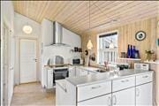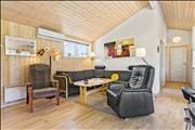 Når du træder indenfor, møder du et klassisk sommerhus med en varm og indbydende atmosfære. De lyse trævægge og lofter giver rummet et luftigt udtryk, mens brændeovnen spreder varme og hygge på de køligere aftener. Det åbne opholdsrum samler køkken, spisestue og stue i ét, så familien kan være sammen, uanset om der laves mad, spilles spil eller læses en god bog. Store vinduer trækker naturen med ind i stuen og skaber en tæt forbindelse til omgivelserne udenfor. Huset er indrettet, så du nemt kan finde ro, hvad enten du er til en stille stund med morgenkaffen eller en hyggelig aften foran brændeovnen med familien.